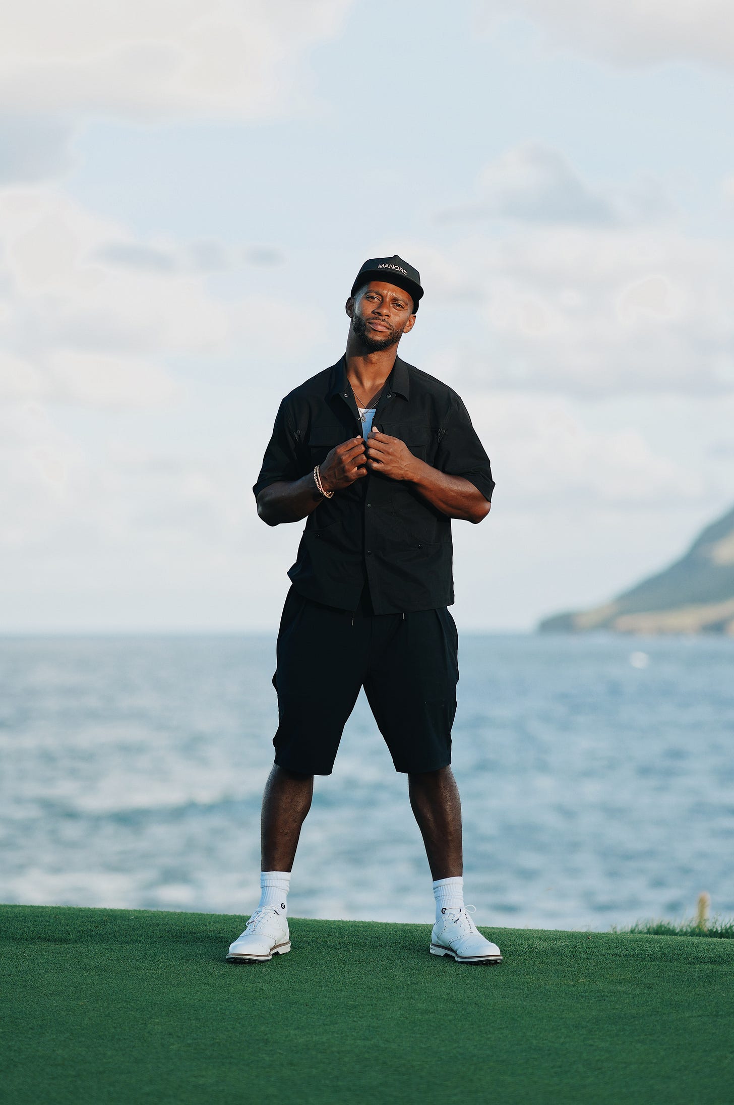 Blending elements of a lookbook, travelogue, and what I’d described as a great day out on the course, MANORS enlisted Super Bowl champion Victor Cruz and renowned presenter and sports personality Josh Denzel for a journey to the golf paradise of Cabot St. Lucia.
