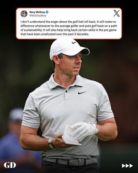 As a recreational golfer myself, I see Rory’s perspective that the proposed rollback likely won’t impact the enjoyment of the game for many players like me. A modest reduction in distance off the tee is unlikely to affect my score (when I’m going to three-putt anyway 😅) or affect my overall experience on the course. We could always move up a tee box if it’s that big of an issue but my fragile masculinity is never going to let that happen :)
