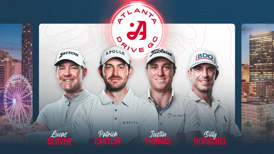 Atlanta Drive GC: Featuring Justin Thomas, Patrick Cantlay, Billy Horschel, and Lucas Glover. The team is owned by Arthur M. Blank (Atlanta Falcons, Atlanta United).